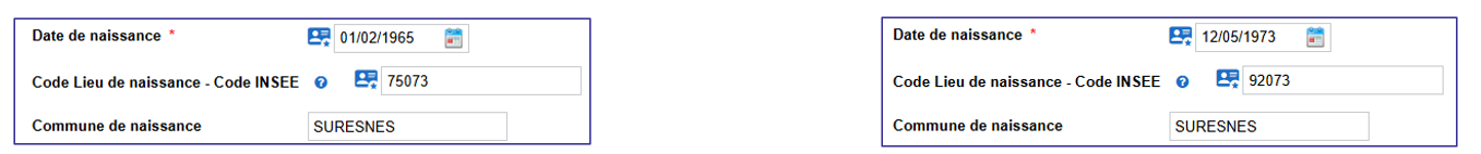 Pour l’INS, on se réfère toujours au code INSEE à la date de naissance de l’usager. En effet, certaines communes/pays changent de code ou de dénomination au fil des ans. C’est le cas par exemple de Suresnes : avant le 01/01/1968 le code INSEE était 75073, puis après cette date : 92073.
