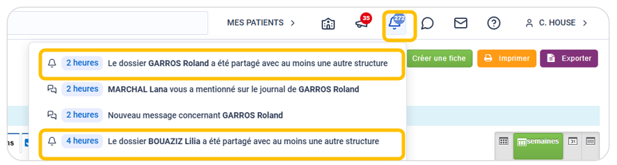 Si vous êtes un administrateur de structure, référent de dossiers, ou encore partenaire du dossier, vous serez désormais averti par le biais d’une notification dès lors qu’une autre structure accède à l’un de vos dossiers.